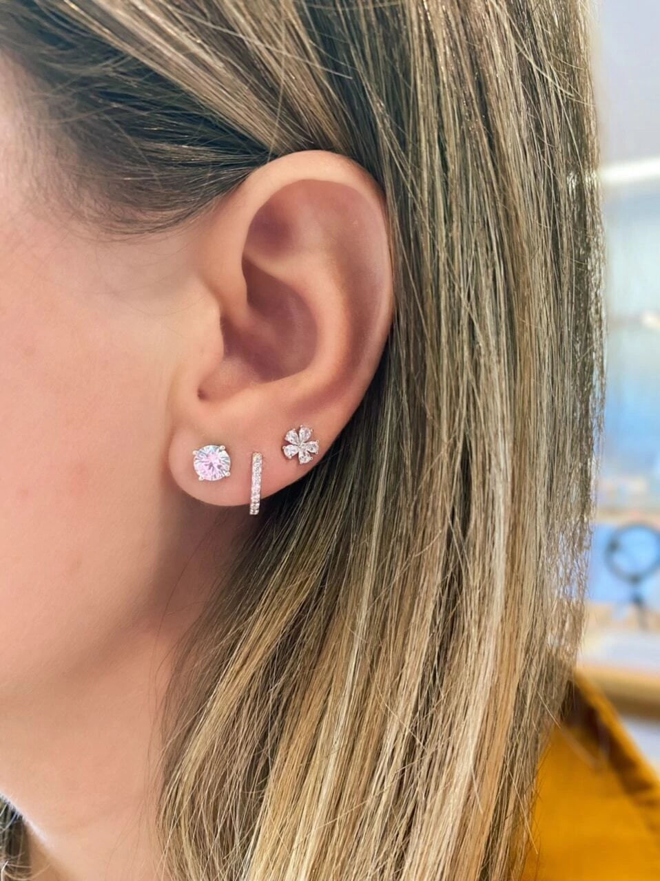 Brinco ponto de luz cravejado com zircônia branca. Prata 925 com banho de ródio.