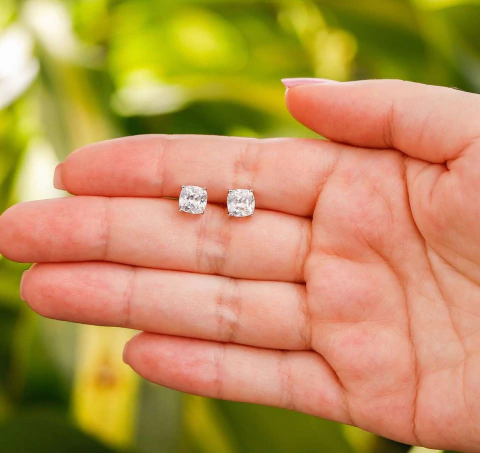 Brinco pedra quadrada zircônia branca. Prata 925 com banho de ródio.