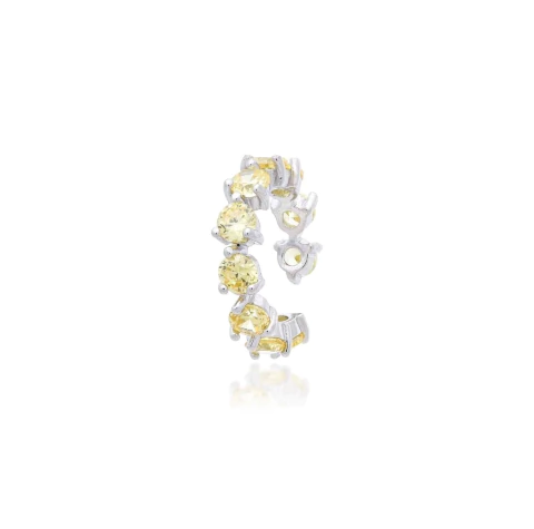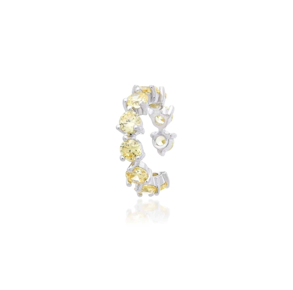 Fake piercing cravejado com Citrino. Prata 925 com banho de ródio.